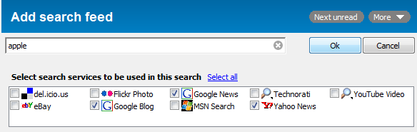 As an added bonus we are announcing search feeds support in Feedreader 3.13 MySQL Edition. Search feed support for normal Feedreader will be available in some days.