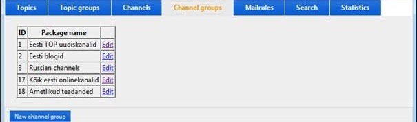Following images shows you how to define channel groups if needed. In simple cases you do not need to create channel groups because you want to find information from all the subscribed feeds in your database. But in more advanced cases it's possible to create channel groups like „online news only“, „paper channels only“ or for example "blogs only". This way you can limit the search of information only to some channels.
