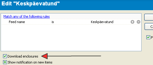 If you have checked this option then all enclosures will be automatically downloaded to enclosure directory if new items arrive in this feed/smartfeed.